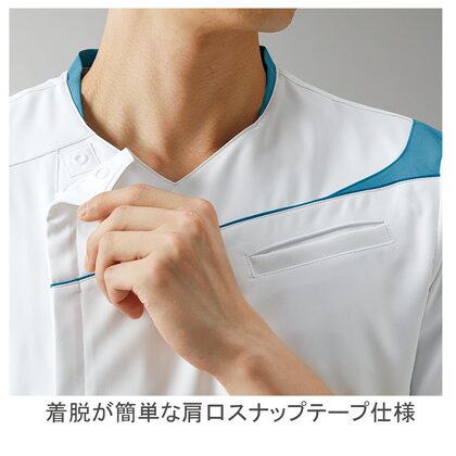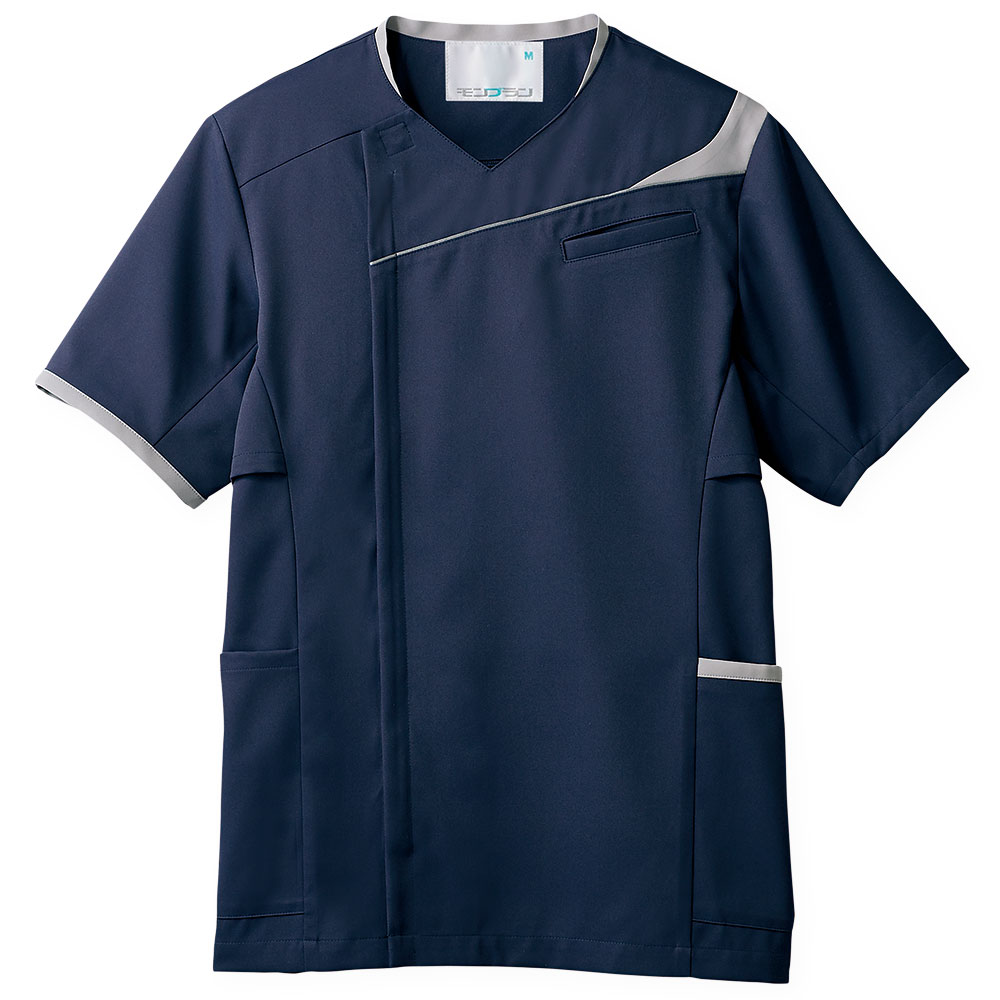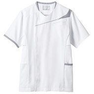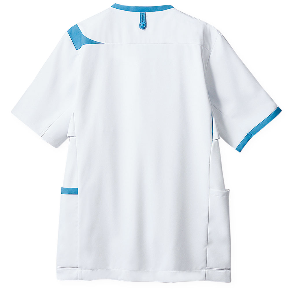 スポーツウェアの様な動きやすさとデザインが魅力のメンズスクラブです。型崩れの少ない素材でカラバリが豊富、ペアの男性用商品と合わせてチームでのご利用も多い商品です。左胸/両腰ポケット、脇下ベンチレーション、衿後ろストラップホールド付き。織物素材の《WFR》ソフトラチネは、しっとりとしたニットのような伸縮性のある高機能素材。工業洗濯対応・SEK(赤)・帯電防止・防汚加工・透け防止・吸汗速乾素材。