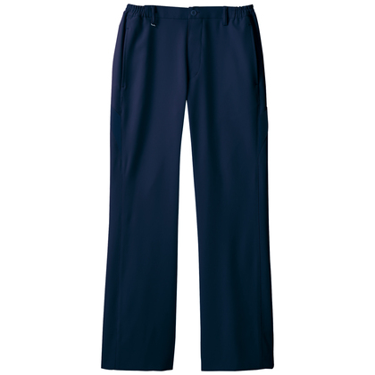 ニットの様な伸縮性のある織物素材を使用した、メンズパンツです。脇ゴム、ノータック、前ファスナー、両脇/右後ろポケット付き。織物素材の《WFR》ソフトラチネは、上品な凹凸模様の特殊織りで、ニットの様な伸縮性としっとりとした肌触りが特徴。適度なハリがあるので綺麗なシルエットもキープします。工業洗濯対応・SEK(赤)・帯電防止・防汚加工・透け防止(ホワイトのみ)・吸汗速乾素材。