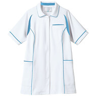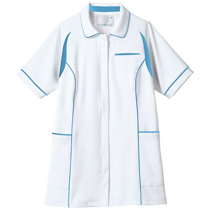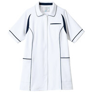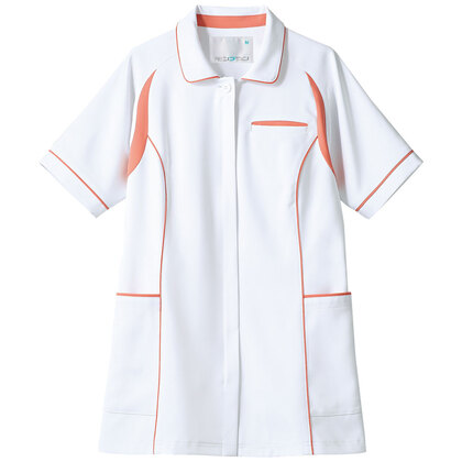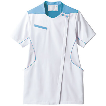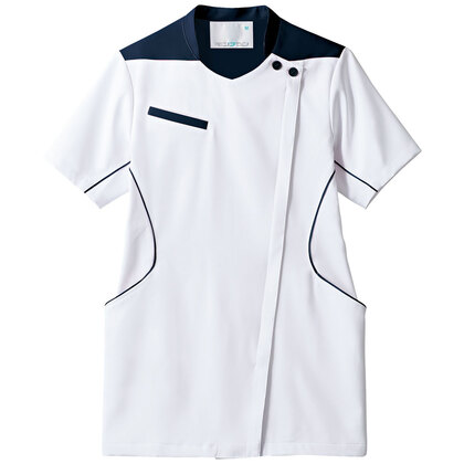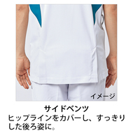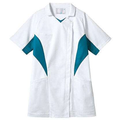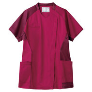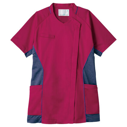 Sportyで流れるようなデザインが人気のレディススクラブです。右胸ポケット、両腰ポケット(内ポケット付き)、脇下ベンチレーション、衿うしろストラップホールド付き。織物素材の《WFR》ソフトラチネは、上品な凹凸模様の特殊織りで、ニットの様な伸縮性としっとりとした肌触りが特徴。適度なハリがあるので綺麗なシルエットもキープします。工業洗濯対応・SEK(赤)・帯電防止・防汚加工・吸汗速乾素材。