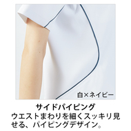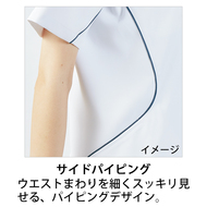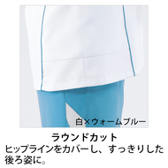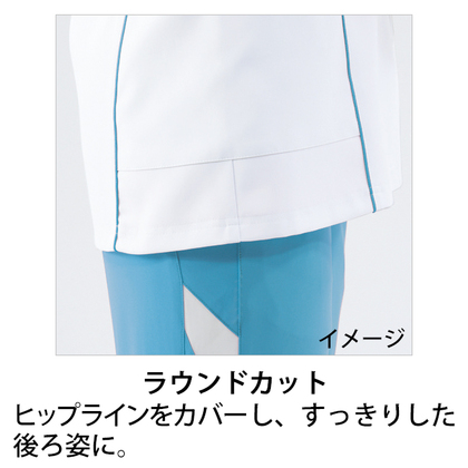 スラリと見せるアクセントの配色に、後ろラウンドカット加工でヒップラインをカバーするレディスジャケットです。左胸ポケット、両腰ポケット(内ポケット)付き。織物素材の《WFR》ソフトラチネは、上品な凹凸模様の特殊織りで、ニットの様な伸縮性としっとりとした肌触りが特徴。適度なハリがあるので綺麗なシルエットもキープします。工業洗濯対応・SEK(赤)・帯電防止・防汚加工・透け防止・吸汗速乾素材。