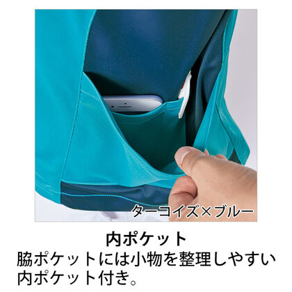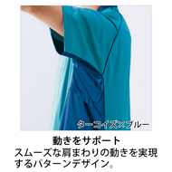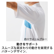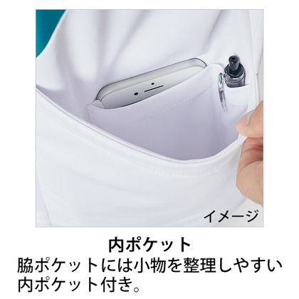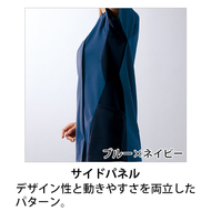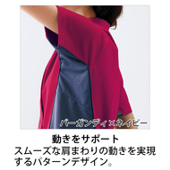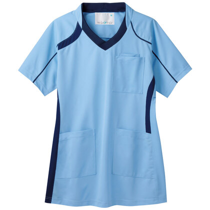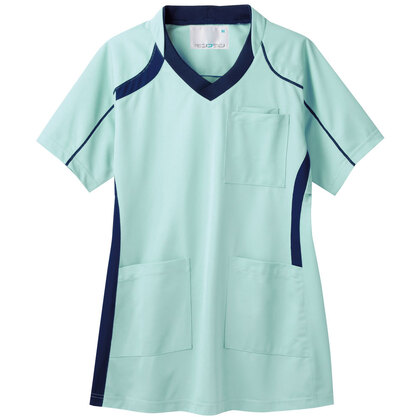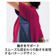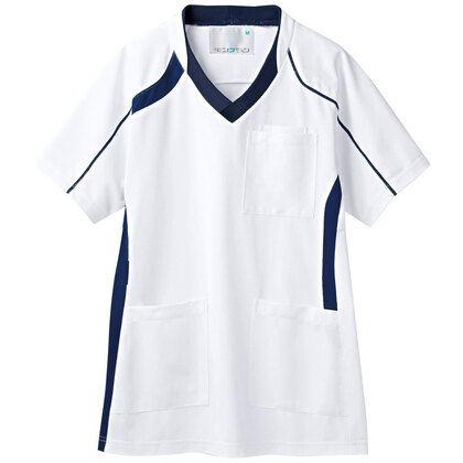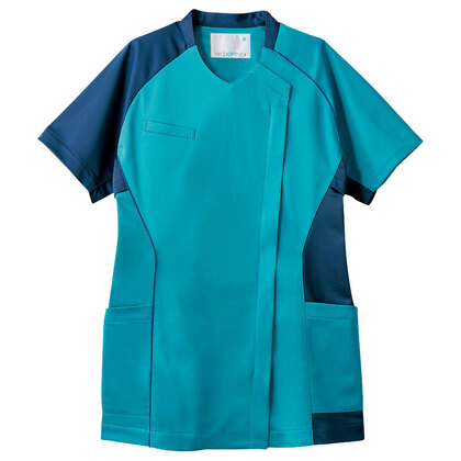 ジグザグ型の脇縫製と立体裁断により、腕の稼働がさらにスムーズに進化したレディススクラブです。右胸ポケット、両腰ポケット(右:ループ付き)。ニット素材の《NAD》アクエアードビーメッシュは、吸汗・拡散・速乾性に優れ、汗を素早く吸収するため肌側のベタつきを軽減。さらに点接触のためドライタッチで快適な着心地を提供します。工業洗濯対応・SEK(赤)・吸汗速乾・制電・ストレッチ素材。