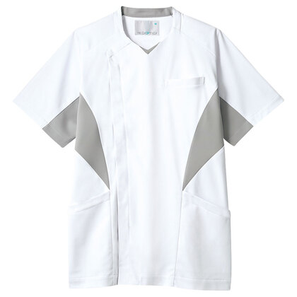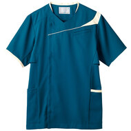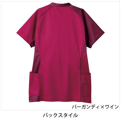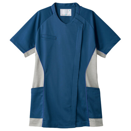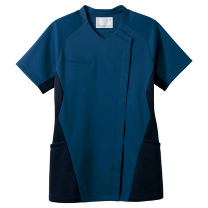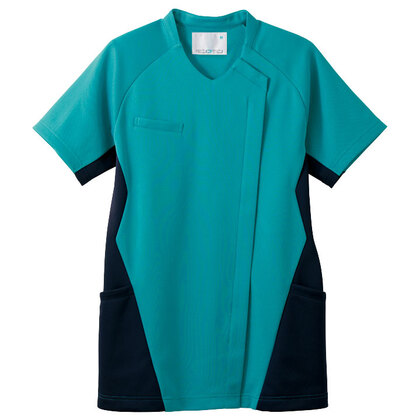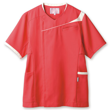 人気の左右非対称デザインを採用した、チームで着れる男女兼用スクラブです。左胸ポケット、両腰ポケット(内ポケット付き)、右脇ループ、脇下ベンチレーション付き。ニット素材の《NHP》ハイパーストレッチトリコットは、従来品の約3倍のストレッチ性を実現した上質素材。滑らかな肌ざわりと軽い着心地も特徴です。工業洗濯対応・SEK(赤)・吸汗速乾・制電・ストレッチ・防汚加工付き。