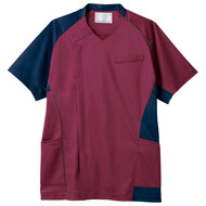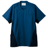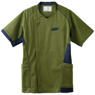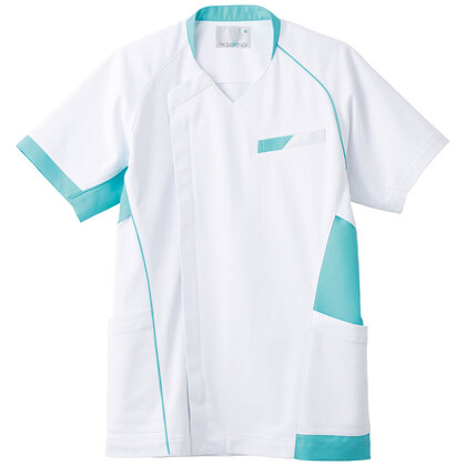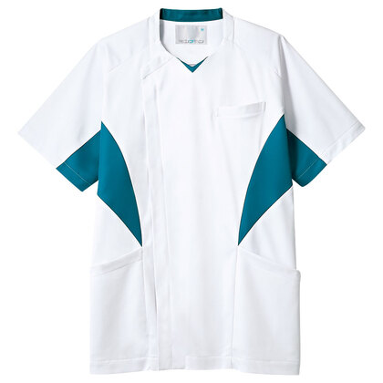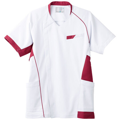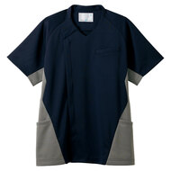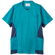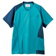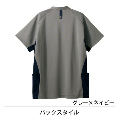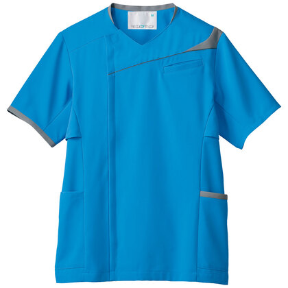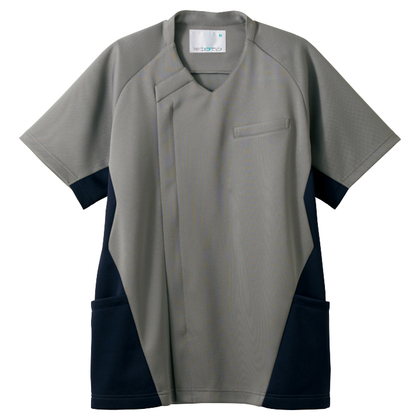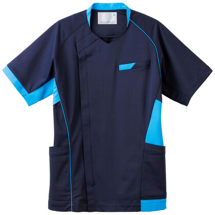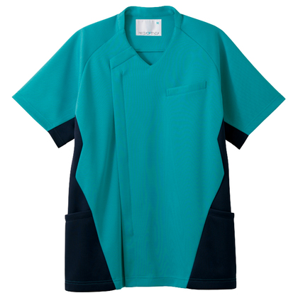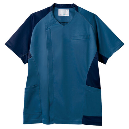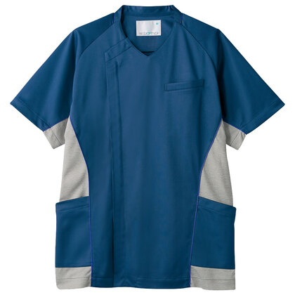 ジグザグ型の脇縫製と立体裁断により腕の稼働がさらにスムーズに進化したメンズスクラブです。左胸ポケット、両腰ポケット(右:ループ付き)。ニット素材の《NAD》アクエアードビーメッシュは、吸汗・拡散・速乾性に優れ、汗を素早く吸収するため肌側のベタつきを軽減。さらに点接触のためドライタッチで快適な着心地を提供します。工業洗濯対応・SEK(赤)・吸汗速乾・制電・ストレッチ素材。