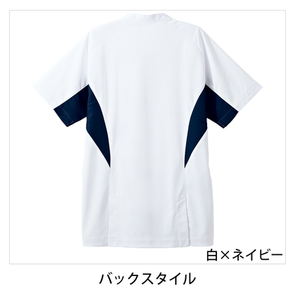 サイドの配色に汗シミの目立たない機能性素材「デュアルファイン」を採用したアシックスメンズスクラブです。左胸ポケット、両腰ポケット、右脇ループ付き。本体のニット素材の《NHP》ハイパーストレッチトリコットは、特殊技術により従来品の約3倍のストレッチ性、吸汗速乾性、制電性の上質素材。滑らかな肌ざわりと軽い着心地も特徴です。工業洗濯対応・SEK(赤)・吸汗速乾・制電・ストレッチ・防汚加工付き。