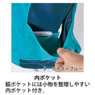 シンプルな無地デザイン、背裏や内側にしのばせた花柄でひそやかな楽しみな商品です♪ 肩口スナップボタン、左胸ポケット、両腰ポケット(左右:内ポケット 右:ループ)、右脇ループ、両裾スリット入り。ニット素材の《NHP》ハイパーストレッチトリコットは、従来のトリコット素材に比べ3倍のストレッチ性能があります。SEK(赤)・透け防止・吸汗速乾・制電・防汚加工付き。
