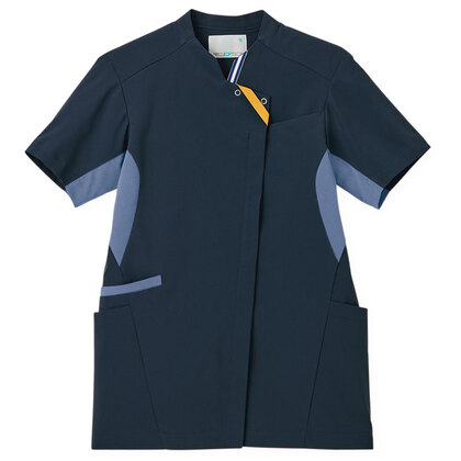 女性用のパターン設計、極めて優れたストレッチ性能のフロントZIPスクラブです。左胸ポケット、両腰ポケット(右:Wポケット、左:内ポケット)、右脇ループ、サイドベンツ付き。ニット素材の《NHP》ハイパーストレッチトリコットは、従来品の約3倍のストレッチと制電機能、軽やかな着心地としっかりとした耐久性もある素材。ポリエステル100%。工業洗濯対応・SEK(赤)・透け防止、吸汗速乾・制電・防汚加工付き。