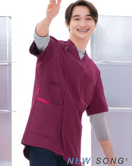 ポケット収容力を充実させたメンズスクラブです。左胸ポケット(PHS対応)、右脇ポケット、両脇Wポケット、右脇ループ、サイドベンツ入り。織物素材の《ML》平二重織は、高級な深みのある色合い、極めて高い伸縮性が特徴。優れた防透性と吸汗性、適度なハリとコシによる美しいシルエットも実現しています。工業洗濯対応・SEK(赤)・透け防止・制電、特殊可能により吸汗、防汚性能が付加されています。
