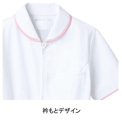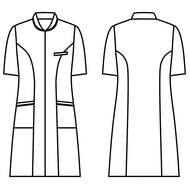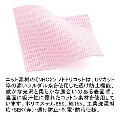 愛らしいショールカラーに、可愛らしいトリミングがアクセントのワンピースです。左胸ポケット、両腰ポケット(内ポケット付き)付き。ニット素材の《NHC》ソフトトリコットは、UVカット率の高いフルダル糸を使用した優れた防透性能、微かな光沢と柔らかな風合いのある表面感、吸汗性に優れた裏面コットン素材が特徴です。工業洗濯対応・SEK(赤)・透け防止・制電・防汚仕様。