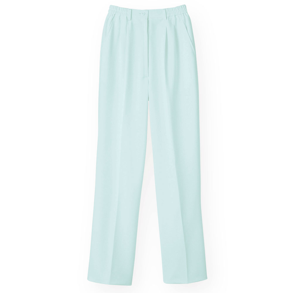防透性に優れたニット素材を使用した、ゆったり快適なレディスパンツです。ウェスト半ゴム、ツータック、前ファスナー、両脇ポケット付き。ニット素材の《NHC》ソフトトリコットは、UVカット率の高いフルダル糸を使用した優れた防透性能、微かな光沢と柔らかな風合いのある表面感、吸汗性に優れた裏面コットン素材が特徴です。工業洗濯対応・SEK(赤)・透け防止・制電・防汚仕様。