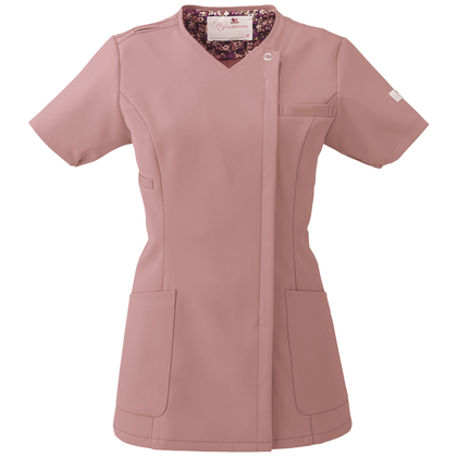 シンプルなシルエットにワコールらしい綺麗な色使い、フェミニンな花柄裏地を忍ばせたジップスクラブです。左胸/両腰ポケット、右脇/右肩ループ、脇下はチラ見え防止のゴム入りです。織物素材の《ネオα》は、繊維の間に極細の隙間をつくり、優れた吸湿性と拡散性、ドライ感を実現したストレッチ素材。耐久性を改善しながらも、柔らかな風合いも実現しています。透け防止・制電・吸汗速乾・ストレッチ素材。