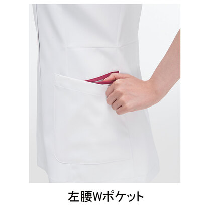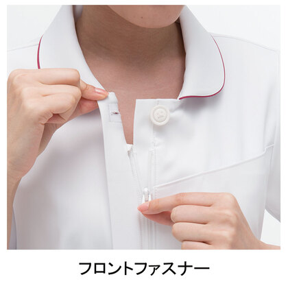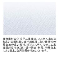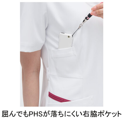 アクセントのビタミンカラーが鏤められた、シンプルな丸衿スタイルチュニックです。左胸ポケット(PHSポケット付き)、右脇ポケット、両腰Wポケット、右脇ループ付き。織物素材の《FT》平二重織は、特殊断面フルダル糸の高い防透性能、吸汗速乾性、高い伸縮性による着心地の良さが特徴の素材です。工業洗濯対応・SEK(赤)・透け防止・制電、特殊仕上により吸水、防汚効果を付加しています。
