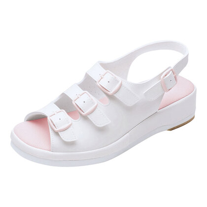 足のアーチに沿ったデザインで優しくフィット。安定感があり疲れにくいウィズ4Eのナースサンダルです。バックルで履く人に合わせて細かなサイズ調節が可能。裏面には柔らかなフェルト素材、ソールには適度な反発力があり軽快な「動きをアシスト ! ヒール高4cmでスッキリ脚長効果も◎