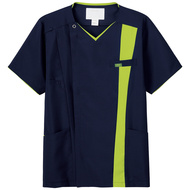 縦のカラーアクセントがSportyなメンズ仕様のジップスクラブです。左胸/両腰ポケット(右:Wポケット)、右脇ポケット、右肩/右脇ループ付き。織物素材の《イリアスマスト》は、帆船に使われる、強固なマストをイメージして開発した素材。ランダムな繊維の集合体が植物の茎の様に毛細管現象を発揮、速やかに体の汗を吸い取り、体内を蒸れから解放します。制電・吸汗速乾素材。