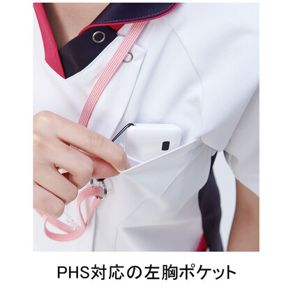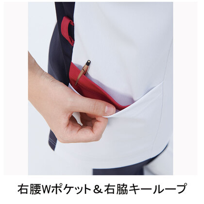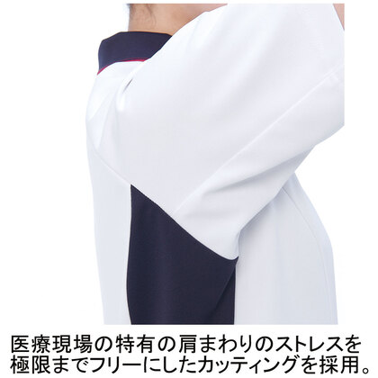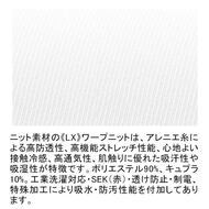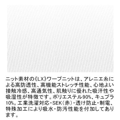 スクラブとチュニックを融合させた男女兼用の涼感素材ジャケットです。 左胸ポケット(PHS対応)、両腰Wポケット、右脇ループ、エアーアームカット仕様。ニット素材の《LX》ワープニットは、アレニエ糸による高防透性、高機能ストレッチ性能、心地よい接触冷感、高通気性、肌触りに優れた吸汗性や吸湿性が特徴です。工業洗濯対応・SEK(赤)・透け防止・制電、特殊加工により吸水・防汚性能を付加してあります。