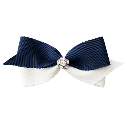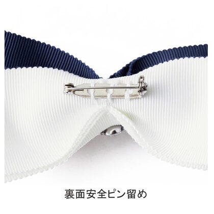 ジャケットやワンピースの衿もとを、爽やかに彩るクリスタルブローチ。ブルーと白のバイカラーが涼しげで、清潔感と気品のあるデザイン。中央には輝くクリスタルがあしらわれ、上品なアクセントになっています。後ろ安全ピン仕様なので、着脱も簡単です。