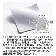 従来品の3倍伸びるニット素材でストレスフリーの、男女兼用リラックスストレートパンツです。ウェスト半ゴム(ひも入り)、ノータック、前ファスナー、両脇ポケット、後ろメッシュ付き。ニット素材の《NHP》ハイパーストレッチトリコットは、従来品の約3倍のストレッチ性、吸汗速乾、制電、白色は透け防止&防汚加工を付加した、軽量で滑らかな上質素材。SEK(赤)・透け防止(白色のみ)・吸汗速乾・制電・防汚加工付き。