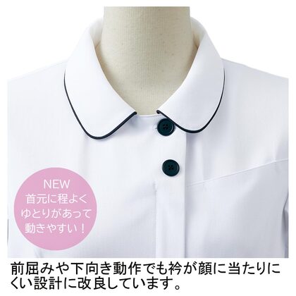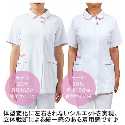 時代に合わせ現場の声で進化した、美しく快適なナースジャケットです。識別が簡単なカラー展開、窮屈感のない衿もと、年齢に応じた体形に左右されないシルエット、腕の可動域、ポケット収納力を大きく改善しています。左胸ポケット、右脇スマホポケット、両腰ポケット(内ポケット付き)、両脇ループ付き。白色にはニット素材の《NHC》ソフトトリコット、色物にはニット素材の《NHT》カラートリコットを使用しています。