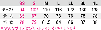 ※SSとSのレディースサイズはボディーラインをよりキレイに見せるジャストフィットシルエット仕様です。