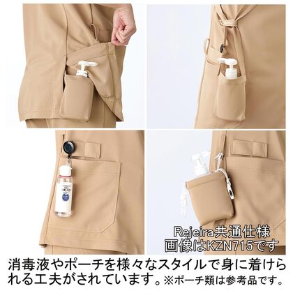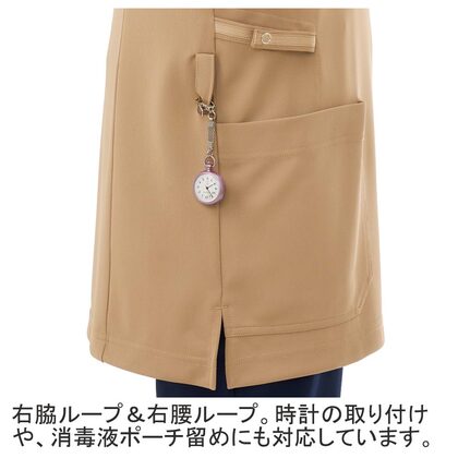 究極の軽さを追求した、プルオーバーのUNISEXスクラブです。左胸ポケット(スマホ対応)、左胸ポケット(名札ループ)、左肩ループ、右腰マルチループ、右脇ループ、両腰ポケット(右:内ポケット)、両裾スリット入り。ニット素材の《エアリーフィールトリコット》は、工業洗濯対応の中空糸を使用し、約15%の軽量化と2倍以上の通気性のある素材。工業洗濯対応・SEK(赤)・透け防止・吸汗・制電・ストレッチ素材。