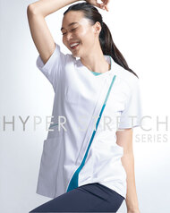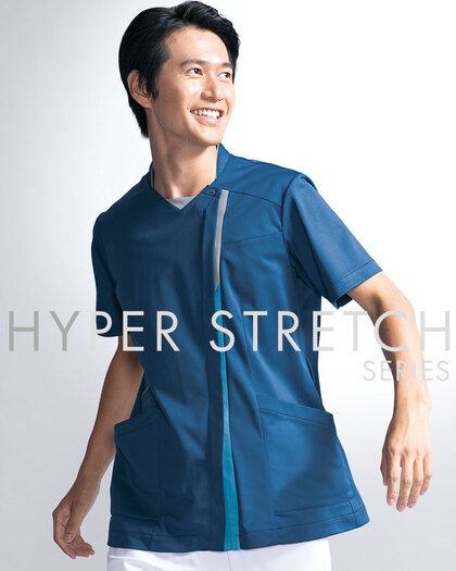 ストレッチ性能でダントツ、ハイパーストレッチシリーズのSportyな男女兼用スクラブです。フロントZIP、左胸ポケット、両腰ポケット(右Wポケット)、両脇ループ、サイドベンツ仕様。ニット素材の《NHP》ハイパーストレッチトリコットは、従来品の約3倍のストレッチ性、吸汗速乾性、制電性の上質素材。ポリエステル100%。工業洗濯対応・SEK(赤)・透け防止・吸汗速乾・制電・ストレッチ・防汚加工付き。