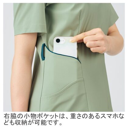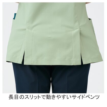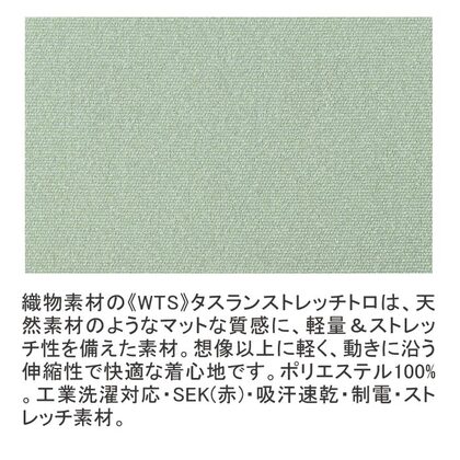 流れるような曲線をデザインに取り入れた男女兼用スクラブ。腕まわりのツッパリ感を解消したRAUMOシリーズです。衿もと識別テープ、衿後ろストラップホールド、右脇/両腰ポケット、両脇ループ、サイドベンツ仕様。織物素材の《WTS》タスランストレッチトロは、想像以上に軽く、動きに沿う伸縮性で快適な着心地です。ポリエステル100%。工業洗濯対応・SEK(赤)・吸汗速乾・制電・ストレッチ素材。
