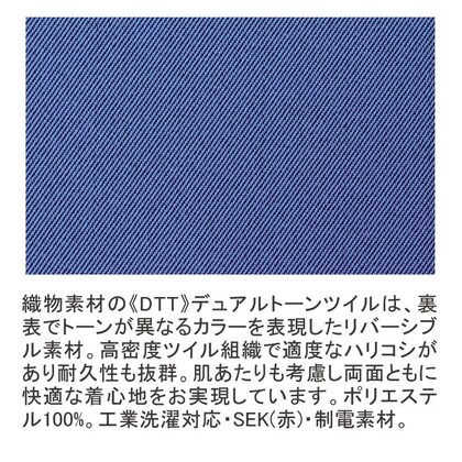 リバーシブルで簡単識別、業務や職種を色分けできるスクラブです。RAKUMO仕様のツッパリのない着用感で、色も着心地もこだわったアイデア商品。胸/両腰ポケット、衿もとマルチループ、両脇ループ、サイドベンツ仕様。織物素材の《DTT》デュアルトーンツイルは、高密度ツイル組織で適度なハリコシがあり耐久性も抜群。肌あたりも考慮した快適な着心地です。ポリエステル100%。工業洗濯対応・SEK(赤)・制電素材。